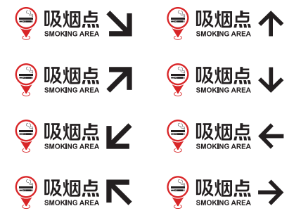 控烟标识系统包括:禁烟标识、室外吸烟点标识、室外吸烟点引导标识。