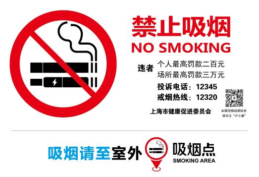 根据《上海市公共场所控制吸烟条例》《“健康上海2030”规划纲要》要求,为深入推进无烟环境建设,进一步强化公共场所“控烟行动三部曲”,即“室内全面禁烟、室外不吸游烟、吸烟请看标识”,控烟“疏堵结合”,规范设置禁烟标识、室外吸烟点标识及引导标识,上海市健康促进委员会制定了《上海市控烟标识系统和设置规范》。